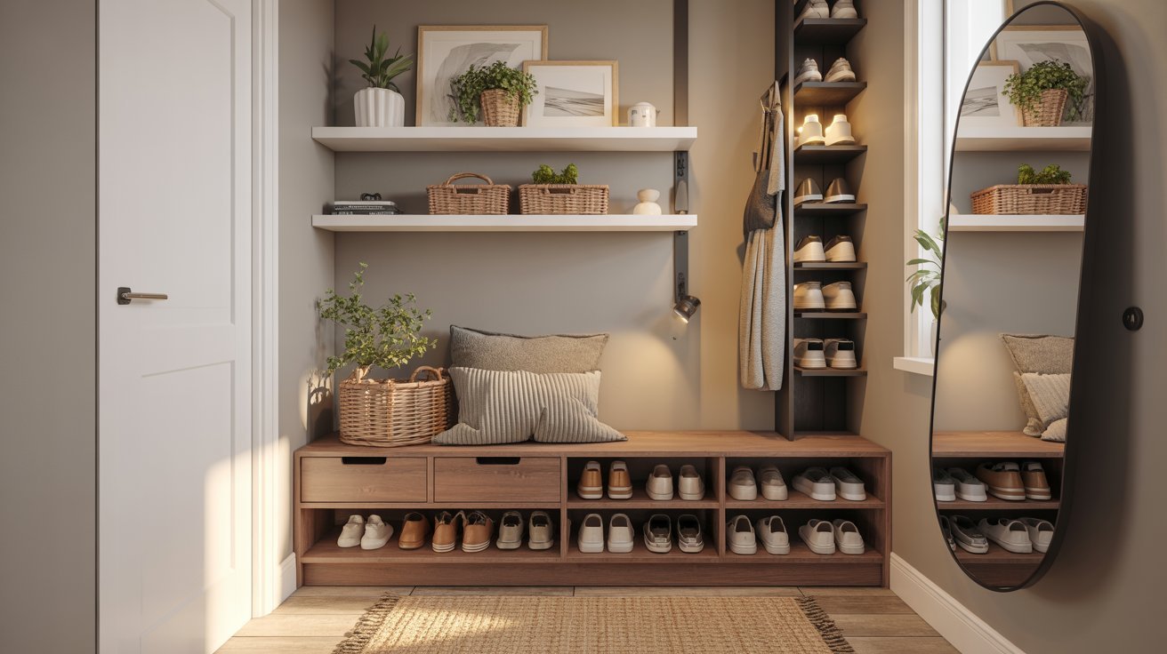 Have a staircase? The space underneath is often wasted. Built-in pull-out drawers or a slim cabinet can house dozens of shoes.